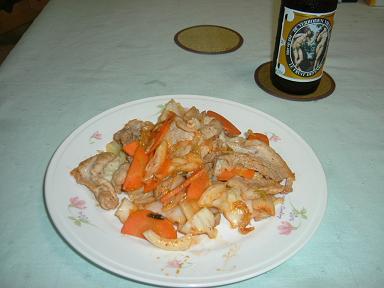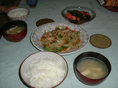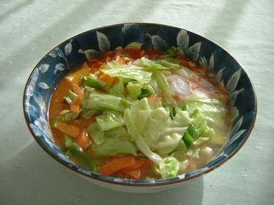 思いきってだいこんを入れてみたらけっこういけた。他はしいたけとしめじ少しと豚肉。ピーマン入れなくても十分たべられたので満足。あとは緑のもの(ほうれんそうとか小松菜とか)があればもうちょっとおいしそうにみえたかも、とのこと。 (070112) |