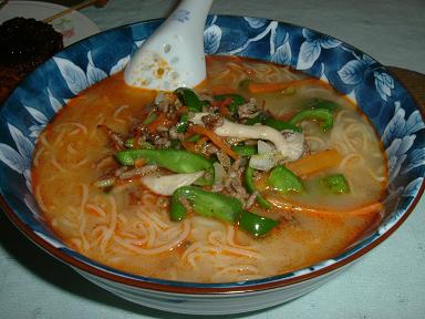 シマダヤはうどんだけかと思ってたけどこれもけっこう美味しい。肉みそも商品にスープと一緒に入っていたのだけど、自分でひき肉とピーマン、にんじん、長ネギ、それにしめじを炒めて最後にのっけた。炒めるときに豆板醤まぜたら激辛になったかも。辛いの食べたいときにやってみよう。 (070225) |