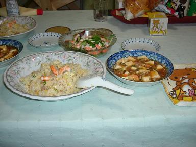 チャーハンは、しょっぱくなるのが心配で薄味になっちゃったけど、麻婆豆腐がけっこうピリ辛だったのでちょうどよかった。でもcook do。 (070413) |