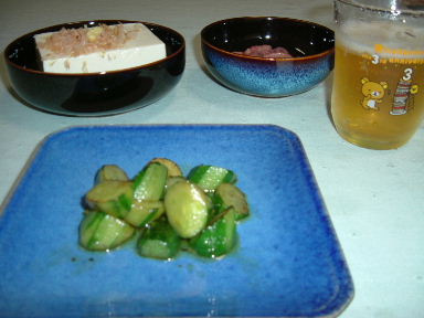 ビールだけ飲もうと思ったけど寂しいのできゅうりをにんにくとごま油、塩としょうゆちょびっとで炒めた。 (071112) |