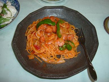 98円で売ってた、レトルトみたいなの。それだけじゃつまらないので、ピーマン、タマネギ、ウインナーなんかを炒めてまぜた。 (071203) |